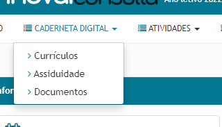 No Menu Caderneta Digital o Encarregado de Educação tem acesso aos Currículos; Assiduidade e Documentos: